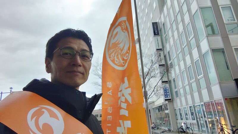 朝夕の通勤・通学時間帯を中心に、地下鉄白石駅・福住駅・菊水駅・南平岸駅・南郷7丁目駅・中の島駅などで、のぼり旗やビラを持って立ち、通行する皆さんにご挨拶する活動です。笑顔で「おはようございます」「行ってらっしゃいませ」と声をかけるだけでも、中島よしきの存在を知っていただく大きな力になります。短い時間でも「その場に立つ」ことが、認知拡大につながります。