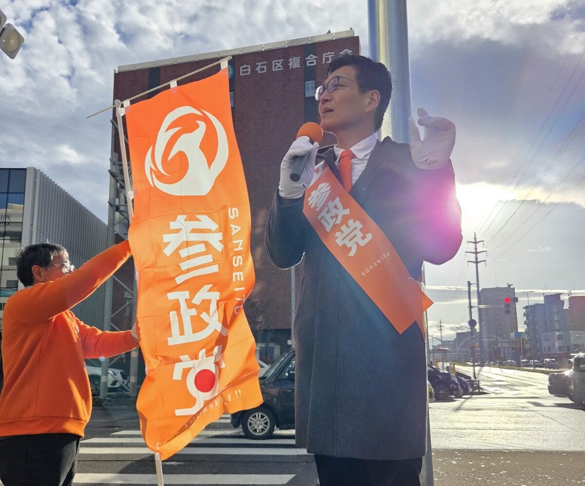 中島よしきが、駅前や交差点、商業施設前などでマイクを握り、参政党の考えや日本の将来への想いをお伝えする場です。応援してくださる皆さまには、演説中にチラシをお配りいただいたり、幟(旗)を掲げてくださったり、近くで聞いていただくだけでも大きな支えになります。豊平区・白石区・清田区の身近な場所での街頭演説に、ぜひお気軽に足をお運びください。